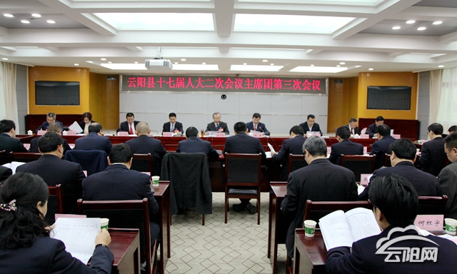 云阳网讯(实习生 刘浮生)1月13日下午,县十七届人大二次会议主席团举行第三次会议。