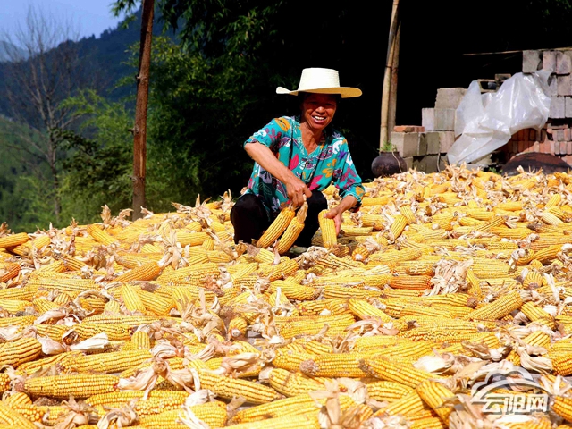 8月14日,人和街道千峰村一组村民邱元碧正在庭院里晒玉米。立秋过后,玉米陆续成熟,我县各乡镇农民利用晴好天气,抢收玉米,处处洋溢着农人“晒秋”的金色喜悦。(邓磊 摄)