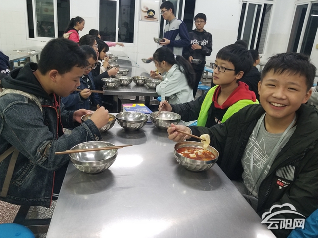 一位留守同学曾在作文中写道:“天气渐凉,寒灯初上,热热闹闹地与家人包顿包面对我来说成了一种奢望。”于是周末的食堂有了温馨的一幕幕:孩子们和老师围坐一起包包面,互相交流着创意的包法,与小伙伴们分享着生活中的喜怒哀乐……他们的脸上洋溢着快乐的笑容,寒意被驱散,冬天仿佛瞬间温暖起来了。