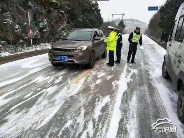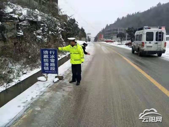 云阳交巡警提醒广大司乘人员,雪天路滑,小心驾驶。驾车时务必减速慢行,保持安全车距,注意行车视线,以免发生事故。