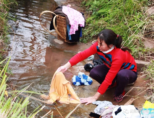 妈妈在水沟洗衣服,我就在旁边搬螃蟹,捉虾米······