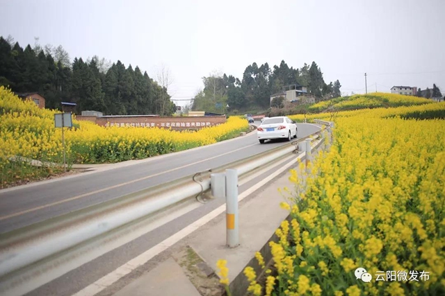 “最美乡村大道”云利路沿线种植了五颜六色的花卉。