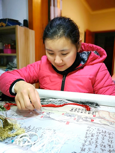 石胜兰用乱针绣法制作夔州绣。组委会供图