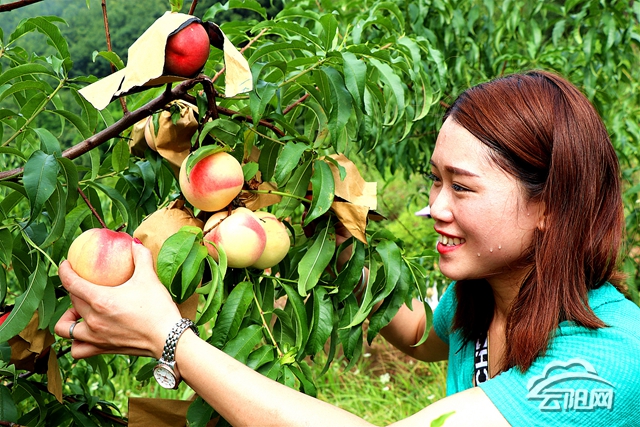 “这是我第二次来这里采摘桃子,我觉得‘秋芯红’桃又大又甜,我今天准备多摘一点,给亲朋好友带回去。”游客于小红边采摘桃子边说。