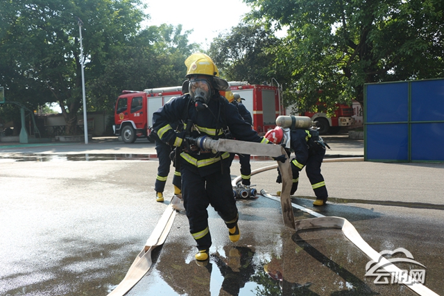 “即使是高温训练,我们要求跟实战一样,甚至比实战更严格,才能保证我们在各种突发灾难面前更好地完成任务。”消防员告诉记者。