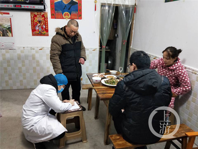 瞬间五:巴南区惠民街道社区卫生服务中心公共卫生科周晓英,在走访武汉返乡人员摸底排查过程中摔伤后,仍坚守在自己的岗位上。她说:“在这关键时刻,不能掉链子!”