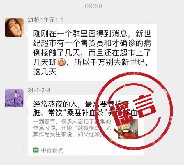 30日,一则“长寿新城重百某营业员被湖北回来的老公感染,重百因此消毒关闭”的消息在朋友圈传播。“这是谣言!”重百长寿商场立即报警。公安部门通过技术手段调查发现,传播这则谣言的是新城重百某售卖电子烟的商户田某,道听途说后,为博人眼球,将网传的其他区县的一则类似谣言进行改编后,在长寿某商家群内传播。目前,公安部门已对田某进行了教育,并责令其写下保证书,同时要求其在微信群内澄清事实,消除不良影响。