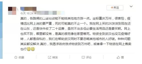 近来,有网友在微博发布消息称:“万州疫情远比想象严重,死亡人数远不止1个。”经向万州核实,截至2月1日19时,无因新型冠状病毒感染的肺炎导致死亡的病例;该区生活超市均正常营业,生活物资供应充足,建议广大市民除了必要的生活需求外尽量减少外出。