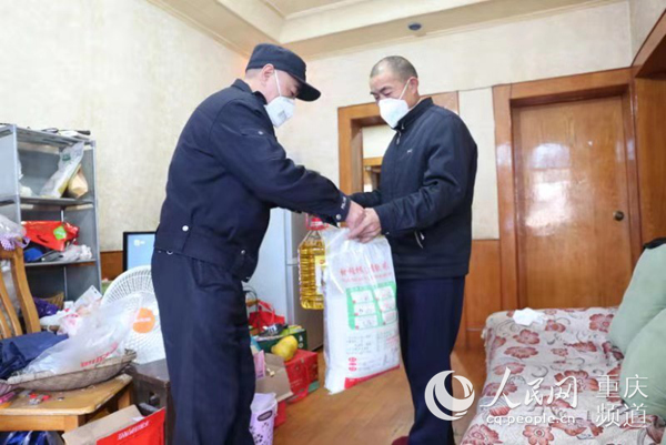 “谢谢,谢谢你们!”1月28日中午,居家隔离4天的九龙坡区石坪桥造漆村居民老覃,收到了社区民警杨清容和社区工作人员提来的油和米。