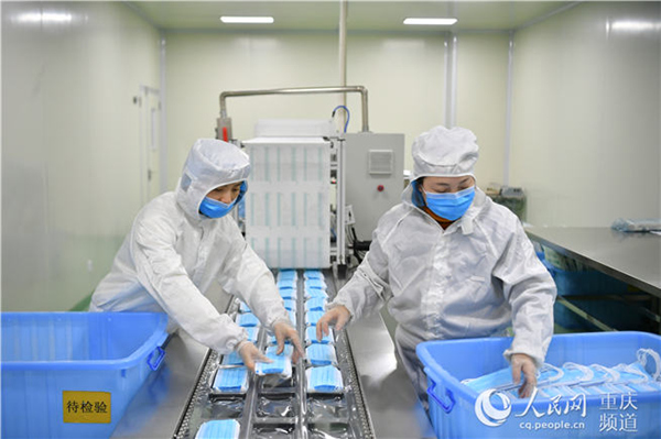 1月28日,位于江南新城的重庆佰纳医疗器械有限公司生产车间里,机器轰鸣运转。当大多数企业还未复工时,这里的工作人员却已异常忙碌。作为重庆仅有的2家能生产医用外科口罩的企业之一,佰纳公司尽最大努力保障供应,要求机器不停产。“按正常8小时上班算,我们的产能每天接近3万片。现在,24小时不间断生产,日产已增至7万片左右。”公司负责人周洪说。
