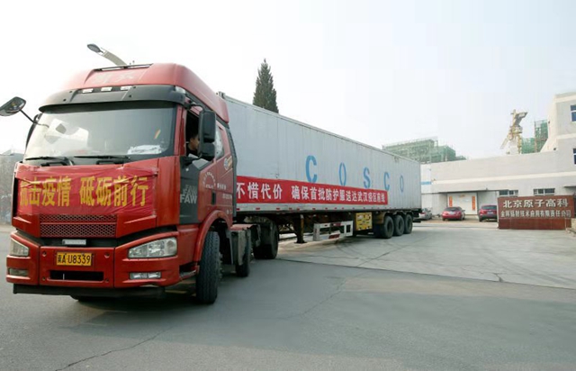 2月12日,北京市房山区,下午13:30,首批批量送至中核集团北京原子高科金辉辐射技术应用有限公司(以下简称“金辉辐射”)辐照灭菌的上万件一次性医用防护服已经完成辐照灭菌,整齐地摆放在厂房外,等待运走。记者看到该批次产品包装上清晰贴有“辐照灭菌”字样,已并经贴上了辐照合格证。从早晨7:00多运抵卸货,到此刻全部整装待发仅仅过去6个小时。