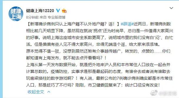 近日,一则关于上海新增确诊新型冠状病毒感染的肺炎病例统计人数时,只统计上海户籍,不理会外地户籍的消息流传甚广。