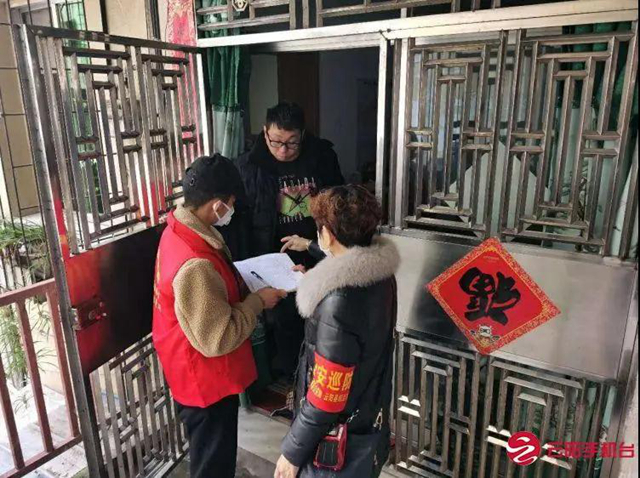 青年志愿者上门摸排登记湖北返乡人员信息。