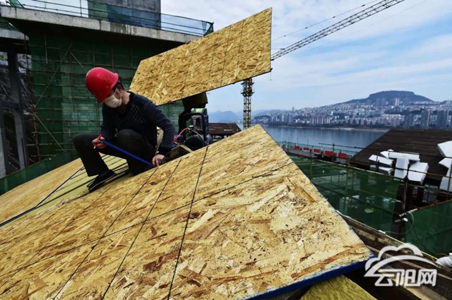 3月10日,记者在云阳县打造的全新历史文化旅游街区——张飞庙民俗风情街的施工现场看到,工地已经恢复了正常作业。大型机械设备来回穿梭,工人们正在进行铺设地砖、完善排水系统等作业,整个街区的部分主体建筑拔地而起,威武的城楼造型映入眼帘。