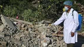 医护人员在双龙镇竹坪村受灾区域进行消毒[详细]