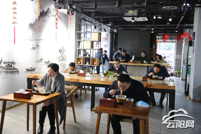 在云阳面体验馆,覃昌德详细了解餐厅恢复经营情况,自觉接受体温测量,堂食间隔就座有序用餐,并对该餐饮企业有序恢复经营表示肯定。