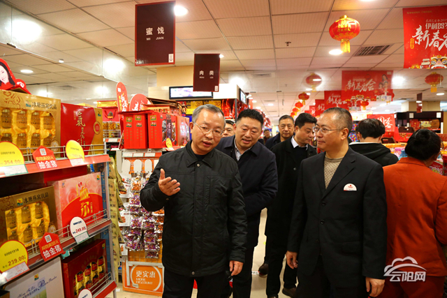 “节日期间还要坚守在岗位上,你们辛苦了,祝你们新年快乐。”在新世纪百货云阳店,张学锋亲切地为员工们送上节日问候,询问节日期间超市食品、用品和菜蔬供给情况,仔细检查食品安全情况,要求相关单位要落实安全责任制,全力抓好春节物资保供工作,企业要加强对员工的消防安全教育,全面落实好各项安全措施,确保春节期间食品市场祥和稳定。