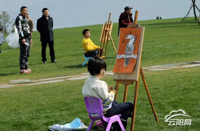 写生、画画,弹竹琴、放风筝……市民朋友趁着大好春光,纷纷来到月光草坪游玩,尽情享受美丽春光。