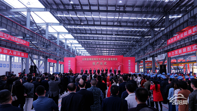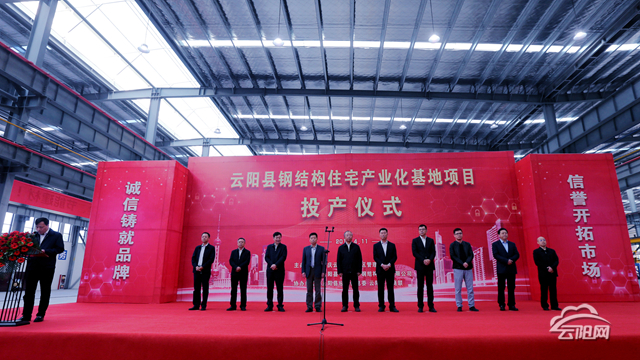 投产仪式上,县委书记张学锋宣布云阳钢结构住宅产业化生产基地一期项目投产!