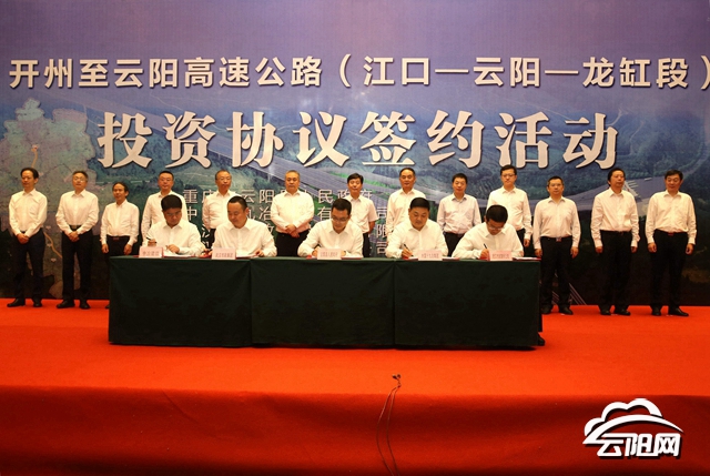 • 云阳网讯(记者 邓磊 李充)大道通南北,天堑变通途!6月21日,开州至云阳高速公路(江口-云阳-龙缸段)(简称江龙高速)投资协议在两江假日酒店正式签约。标志着云阳有史以来投资最大项目正式进入实施阶段,这是云阳发展史上的一件大事,是渝东北交通建设的一件大事,是重庆市基础设施建设的一件大事。