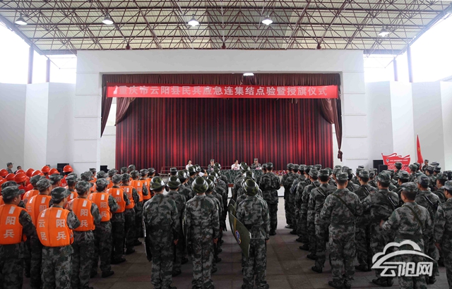 张学锋向民兵应急连授旗并讲话。他指出,云阳县民兵应急连的成立,标志着我县民兵应急力量建设进入规范化、常态化的新阶段。云阳民兵队伍素有优良传统,取得了很多荣誉。新时代的民兵有新使命新任务,新时代的民兵事业有新标准新要求,民兵应急连要继承和发扬好云阳民兵的好传统,努力创造新业绩、做出新的更大贡献。