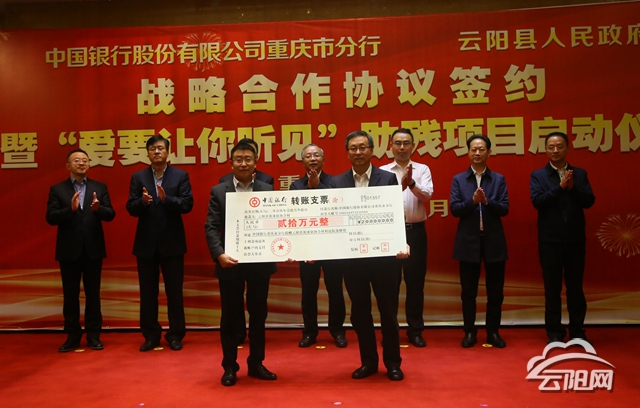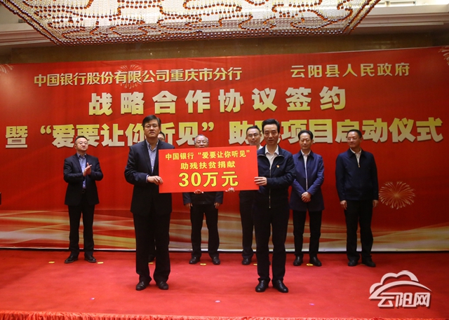 云阳网讯(记者 杨梅娜 丁齐)爱心点燃希望,奉献成就梦想。10月30日,中国银行“爱要让你听见”助残扶贫项目启动仪式在我县举行。