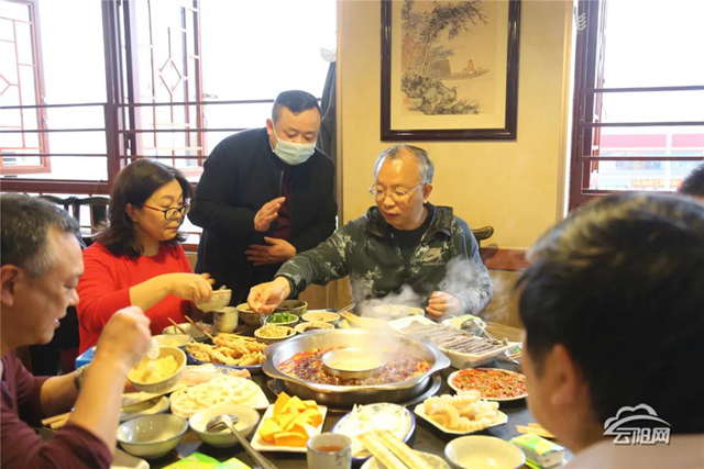 晚饭时间,张学锋一行来“地道老火锅”,进店间隔就座。看完菜单,张学锋等点了火锅的“招牌”食材毛肚、鸭肠及该火锅店的部分特色菜品。不一会儿,热气腾腾的火锅就上桌了。大家纷纷动筷,品尝这久违的香辣美味。