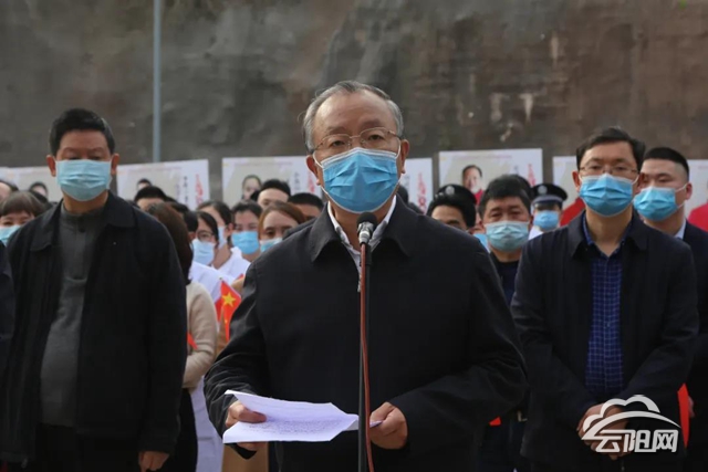 仪式上,县委书记张学锋代表县委、县政府向平安凯旋的12名勇士表达热烈地欢迎和诚挚地问候,向他们致以崇高的敬意。张学锋说,面对突如其来的新冠肺炎疫情,在祖国和人民最需要的时候,12名勇士积极响应援鄂号召,主动请缨、义无反顾、英勇逆行,带着使命、带着责任、带着感情全身心地投入到这场战役的主战场,用大爱和精湛医术挽救了一个个鲜活生命,用大义和无私奉献谱写了一曲曲英雄赞歌。他们不愧是最美丽的天使、是最勇敢的战士,是137万云阳人民的骄傲,是全县干部群众学习的楷模。大家要安心休息、陪陪家人、养精蓄锐,再以饱满的精神状态回到各自工作岗位,再接再厉、直至胜利!希望12名勇士带头弘扬“抗疫精神”,激励全县人民团结一心、砥砺前行,为决战脱贫攻坚、决胜全面建成小康社会而努力奋斗。