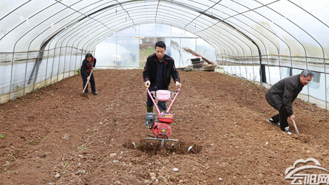 2月25日,人和街道龙水村蔬菜种植基地,农民在大棚里整地。随着天气转暖,我县各地开始了忙碌的春耕。(王彬彬 摄)