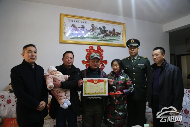 云阳网讯(记者 杨梅娜)连日来,县人武部部长史向阳与县退役军人事务局、乡镇街道相关负责人一起,深入大阳镇、人和街道、双江街道等地,为15名云阳籍荣获三等功的军人家属送去喜报和慰问金,将喜讯通报到家乡,将荣誉送到父母手中。