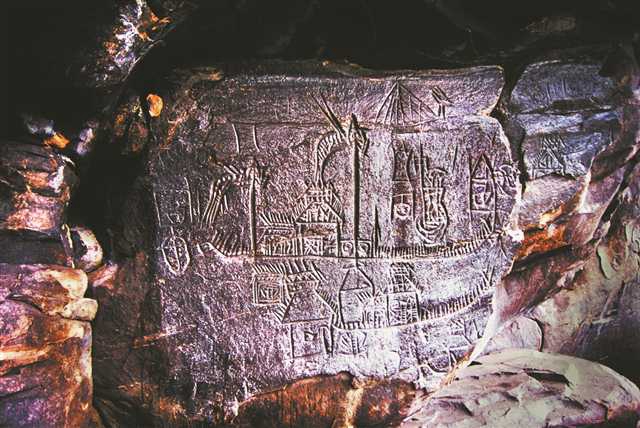 古岩画:此岩画发现于云阳县马岭村牛尾石临江岩体上,描绘了比较完整的聚居部落纪事图景。据专家考证,此岩画为峡江最为古老的岩画。