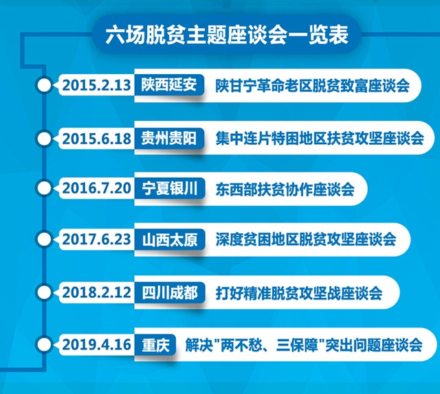 2015年以来,习近平总书记曾在国内考察调研期间主持召开了五场以脱贫为主题的座谈会。这一系列座谈会也成为中国打赢脱贫攻坚战的重要节点。这场在重庆开的座谈会,与前五次一脉相承。