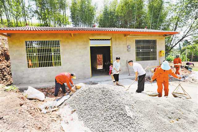 近日,梁平区屏锦镇横梁村六组贫困户马培军的新房前,村干部和村民帮忙清理建筑材料和垃圾。该区今年将对八百余户贫困户的危房进行改造,让贫困户住进“安心房”。特约摄影 刘辉