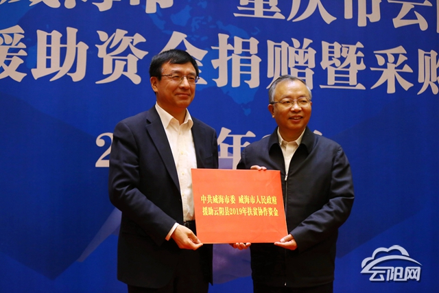 随后,王鲁明代表威海市委、市政府向云阳县捐赠援助资金1600万元;荣成市向云阳县捐赠援助资金900万元;环翠区、文登区、乳山市向云阳县捐赠援助资金共990万元;威海市家家悦集团股份有限公司与云阳县商务委签订采购协议。